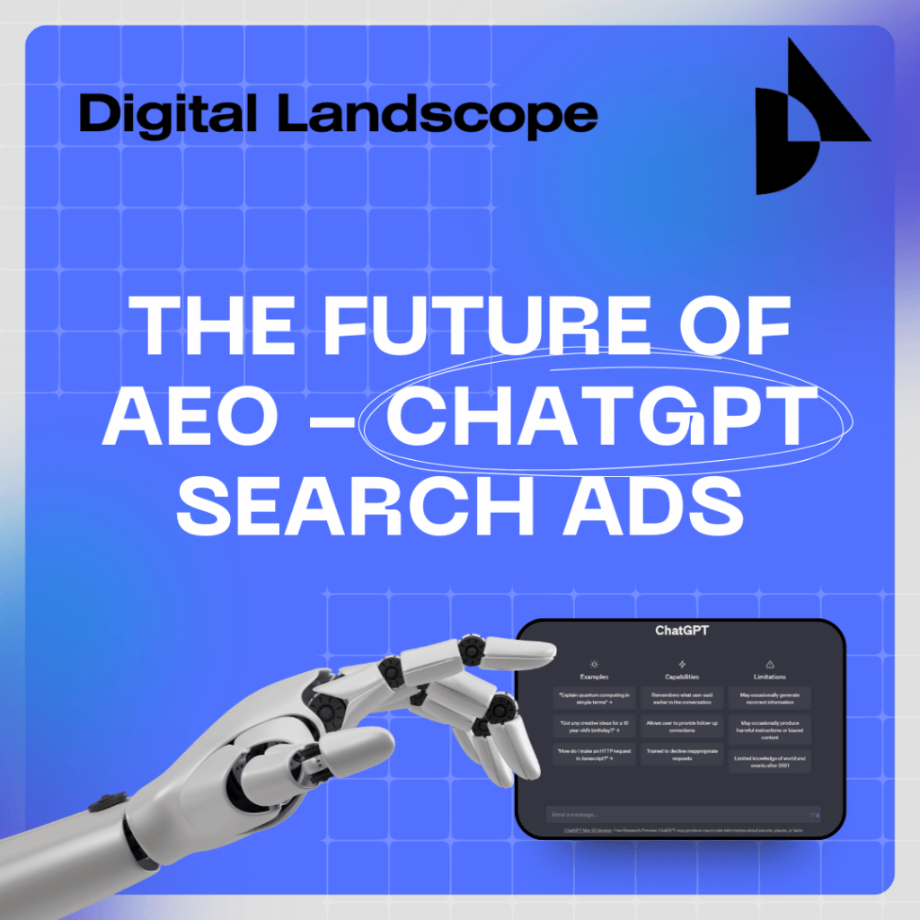 The Future of AEO – ChatGPT Ads Written & Published On The 24/4/25 By Kimberley Biggam – SEO Executive With over 600 million monthly users, ChatGPT & Answer Engine Platforms are changing the way businesses connect with Consumers. AEO in itself is still rising as a new form of innovative marketing that pushes organic traffic to websites through answer engine